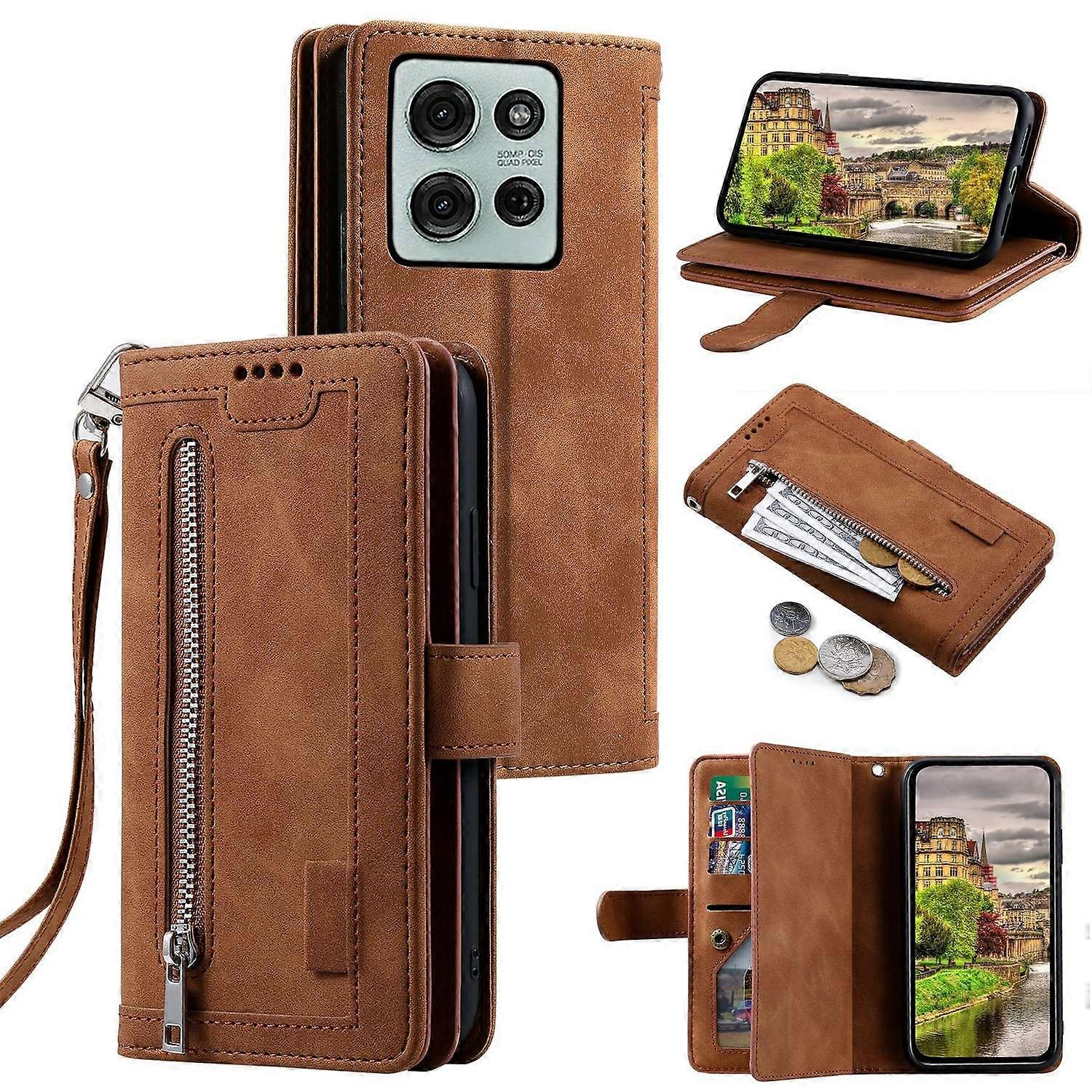 For Motorola Moto G75 5G Case PU Leather Phone Cover with Zipper Wallet 9 Card Slots
