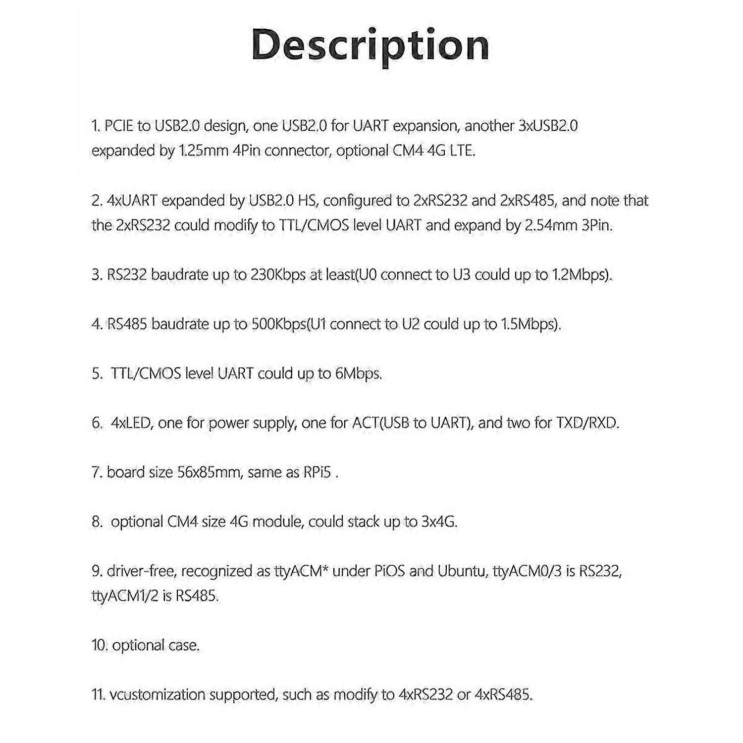MPUUART PCIe to USB UART HAT+Heat Sink+Case for Raspberry Pi 5 RS485 ISO RS232 USB2.0 4G LTE Module