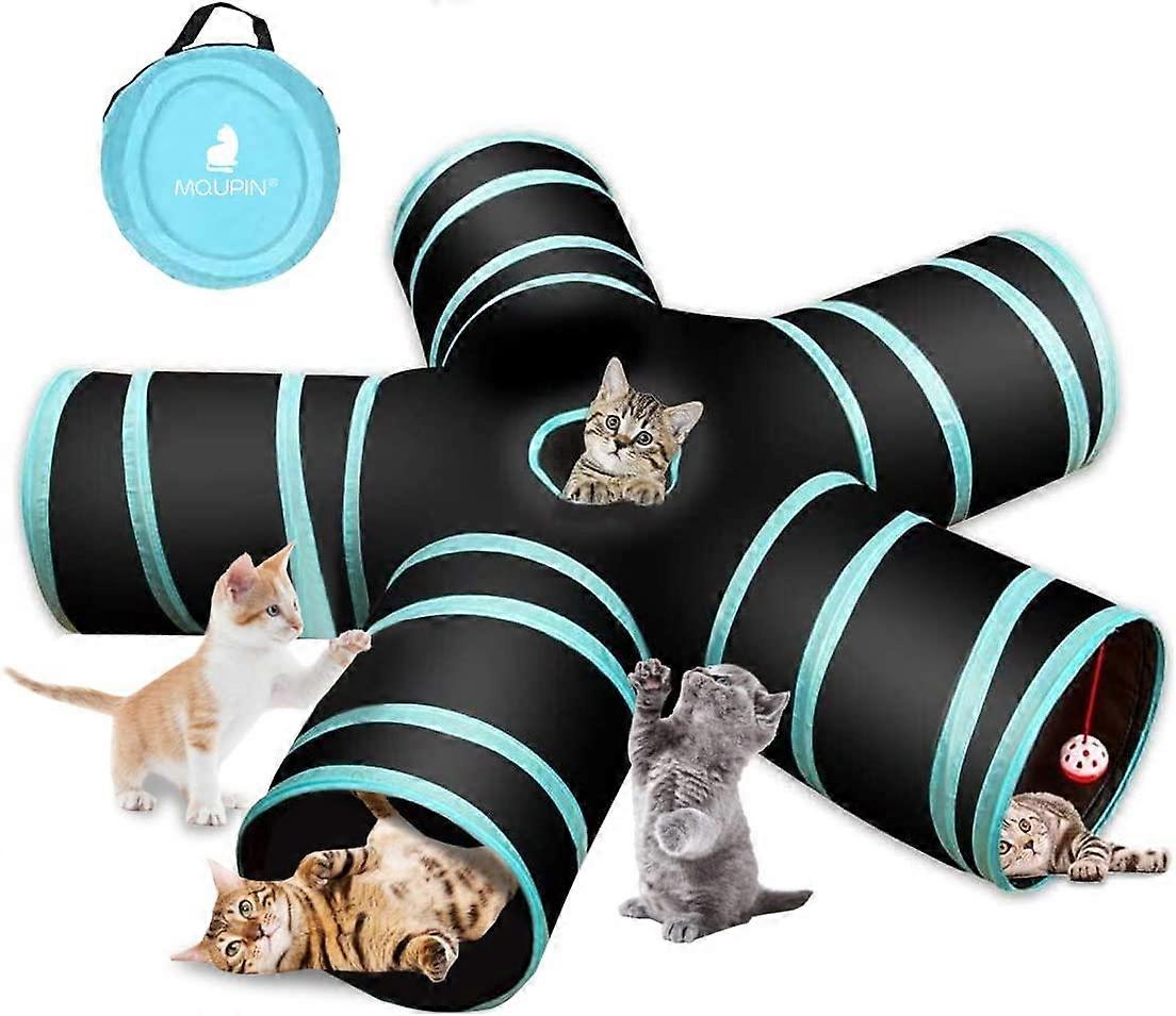 Mqupin 5 Way Tunnel, Labyrinth Toys, Anti-Tear Folding Interactive Tube With Bells Ball And Storage Bag For Cat, Kittens, Puppy, Rabbits