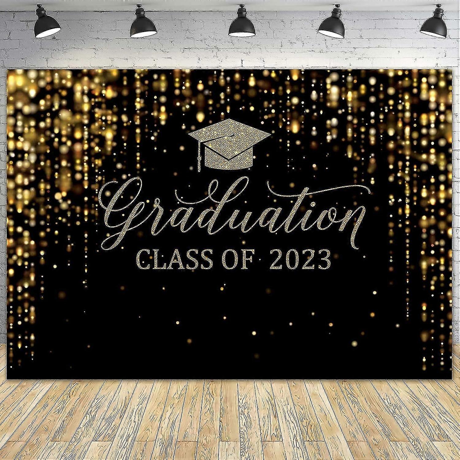 Msocio 7x5ft Durable Polyester Fabric Black Congrats Graduation Backdrop Class Of 2023 Photography Background Gold Bachelor Cap Celebration Party Deco