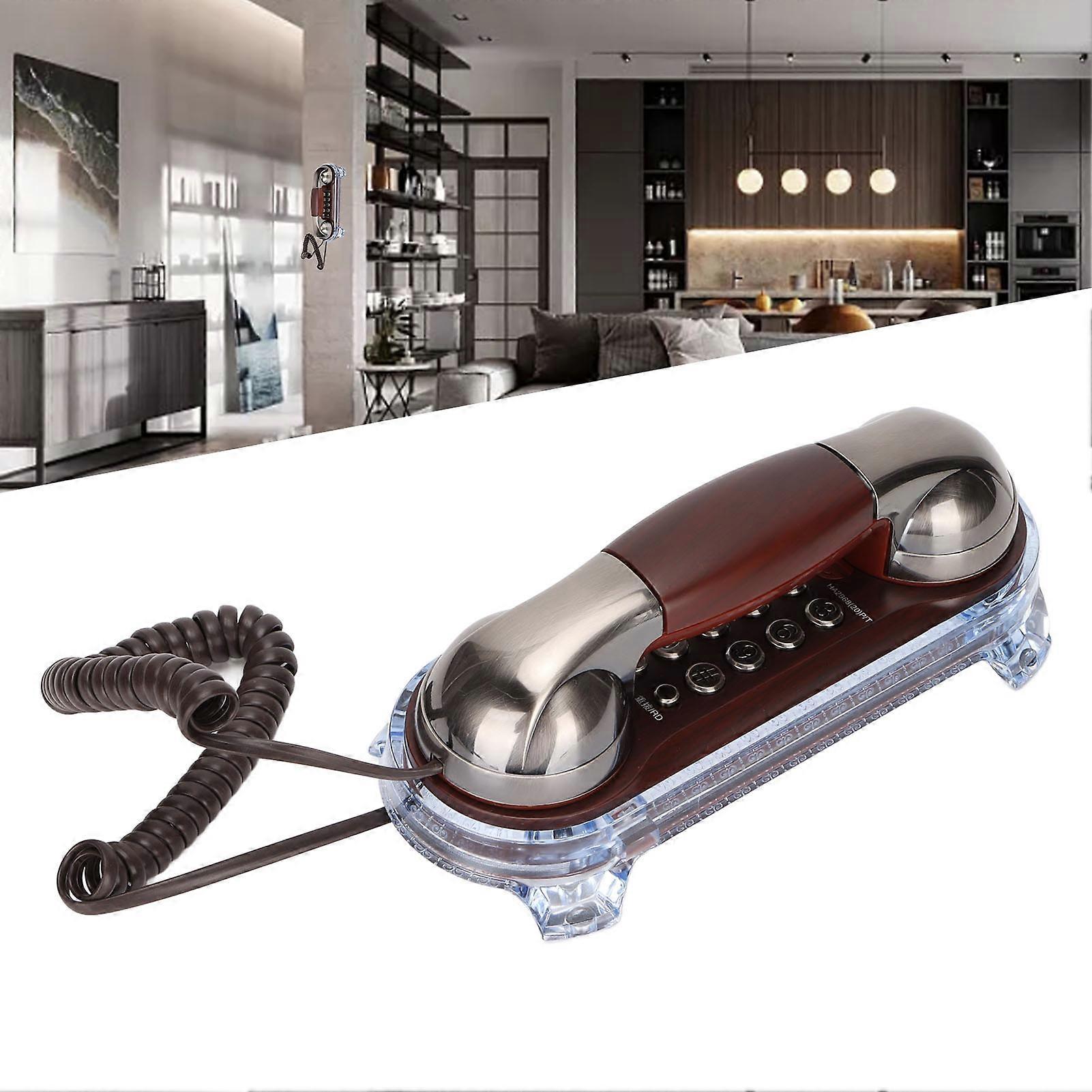 MT‑025 European Vintage Wall Phone Tone Dialing One Key Mute Redial Pause Desktop Wall Phone with Light for Home HotelAncient Nickel Color
