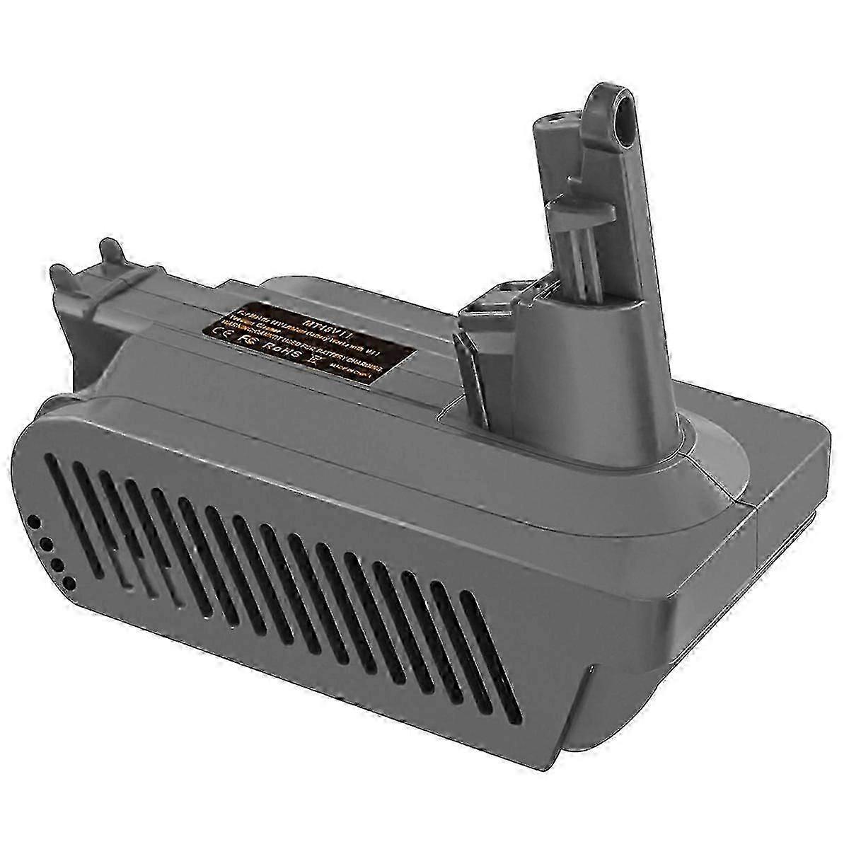 [Only for V11 Screw-in Type]: It only fit for V11 Screw-in Type and not for Click-in Type. The way to tell is simple, check the bottom end of your for original-battery. If there is a big red button it is Click-in Type, this adapter not work. [Excellent Conversion]: Adapter is suitable for 18V Li-ion battery and powers for V11 Screw-in Type vacuum cleaner (NOT for Click-in Type). Only the adapter, no battery. [Perfectly Fit for ]: Compatible with for 18V 4AH 5AH batteries: BL1850B, BL1860B, BL1840B, BL1850, BL1840, BL1860. [Warming Tips]: 1. We only recommend using 4AH and higher capacity for batteries. 2. Remove the battery from the adapter when you are not using it. 3. Cannot be used to charge the battery. Note:Due to different production batches, the batch number screen printing is different, and the product may have color differences, which does not affect use. Colour:Dark Gray Material:ABS Package Contents: 1 * Battery Adapter Only the above package content, other products are not included. Note: Light reflection and different displays may cause the color of the item in the picture a little different from the real thing. The measurement allowed error is +/- 1-3cm.