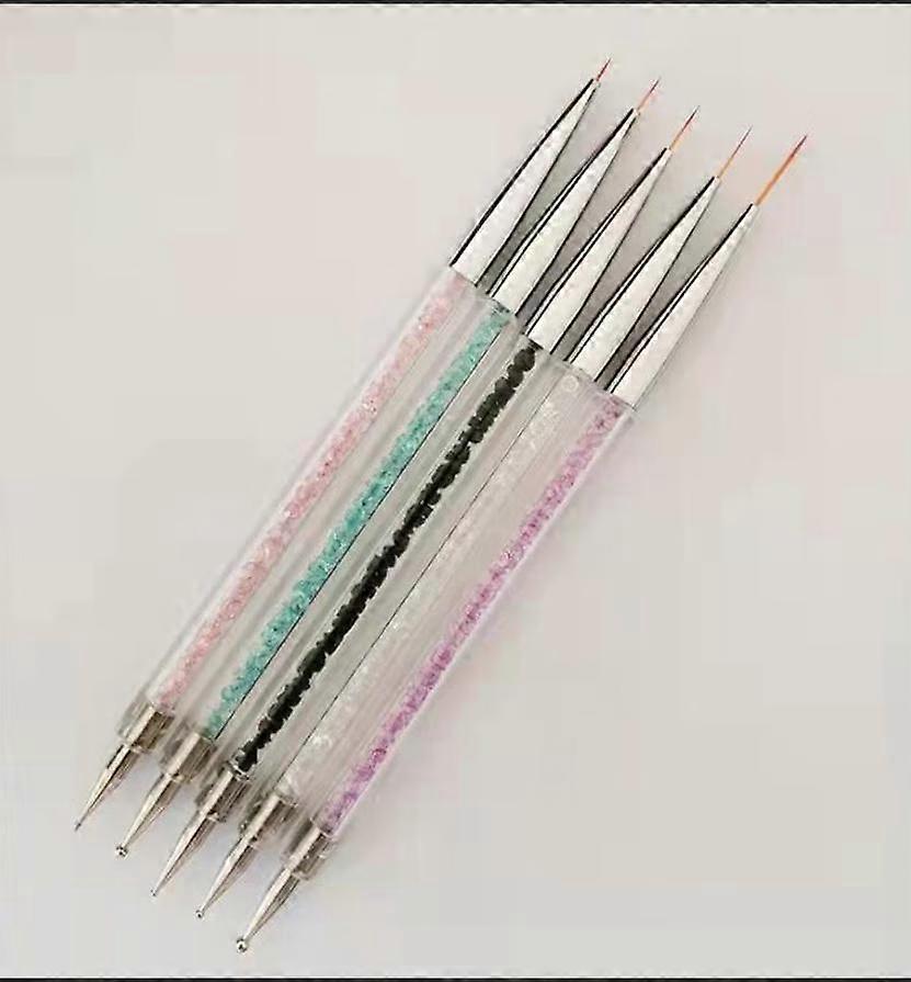 MUJIXI 5 PCS Nails Nail Art Dotting Drawing Nail Art Liner Brushes Pen Nail Polish liner Pen Acrylic Nail Art Brush Double Tips Nail Pens Manicure Dot