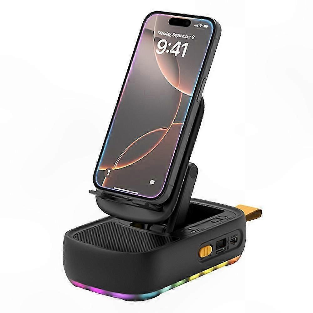 Multifunctional Foldable Phone Stand with Bluetooth Speaker and Power Bank Capability