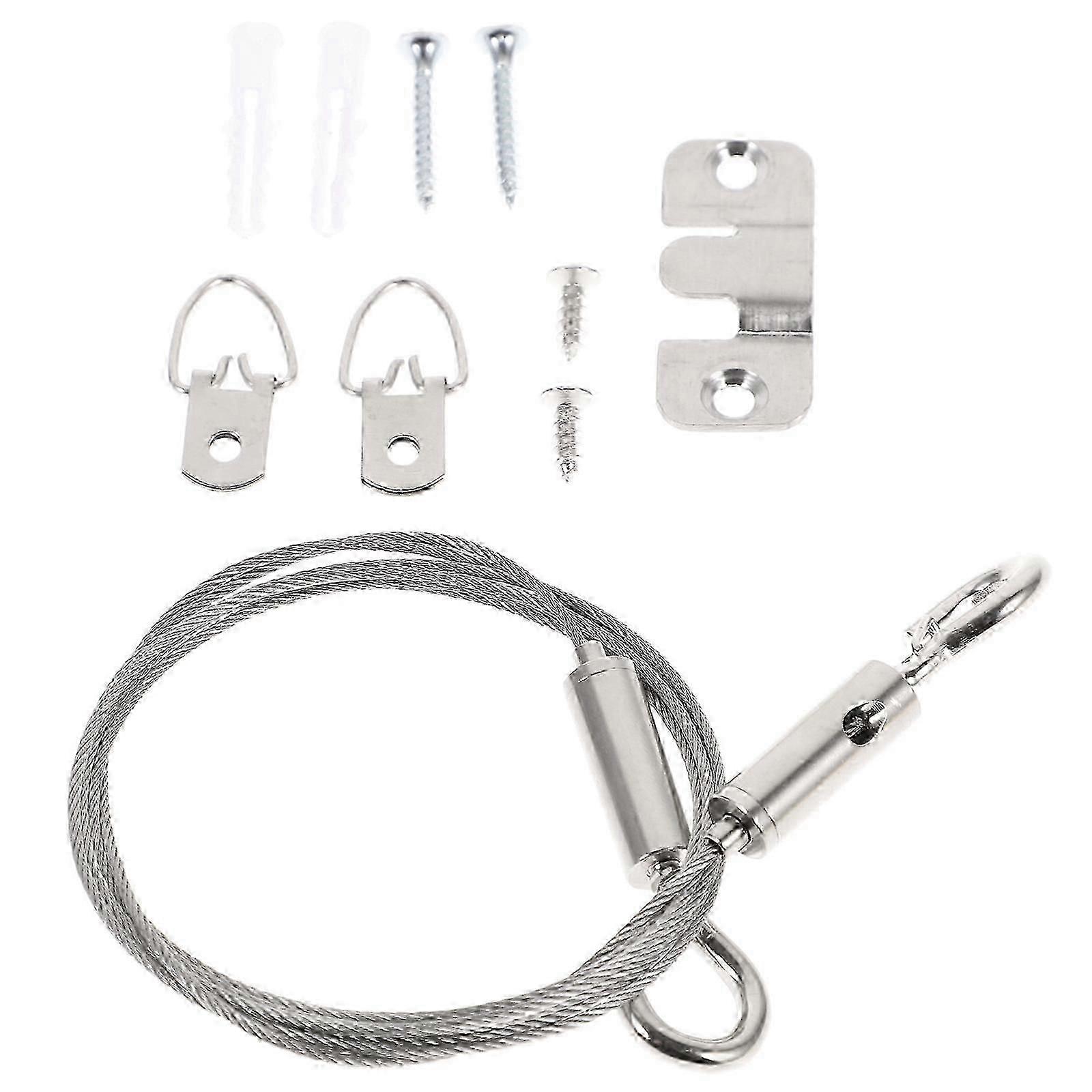 Usage Tips: Wide range of uses, support various picture hanging installations, can be used for home, store, hotel, office, etc. Fine craftsmanship, texture, delicate details, very stylish and beautiful. Easy to be used, great for hanging picture, photo frames, pendant light, mirrors and wall decor. Features -Color:Silver-Material:Stainless steel-Size:124.50X1.80X0.80cm/48.93X0.71X0.31in-Size:4.30X1.80X0.50cm/1.69X0.71X0.20in-Size:3.10X1.50X0.10cm/1.22X0.59X0.04in- Manufactured with stainless steel material, these picture hanging kit are professional, durable for long time to use.- This hanging kit is perfect for organizing or decorating your artwork at home or work space.- Stable working performance, excellent for most DIY project and accessories youll need to suspend frames.- Strong contraction and hardness, will not easy to deform or break, help you better suspend picture.- This hanging kit is suitable for home, art exhibition, office, and anywhere youd like to want use.Packing list: 1 x hanging wire1 x hook2 x picture hooks2 x long screws2 x short screws2 x expansion tubes