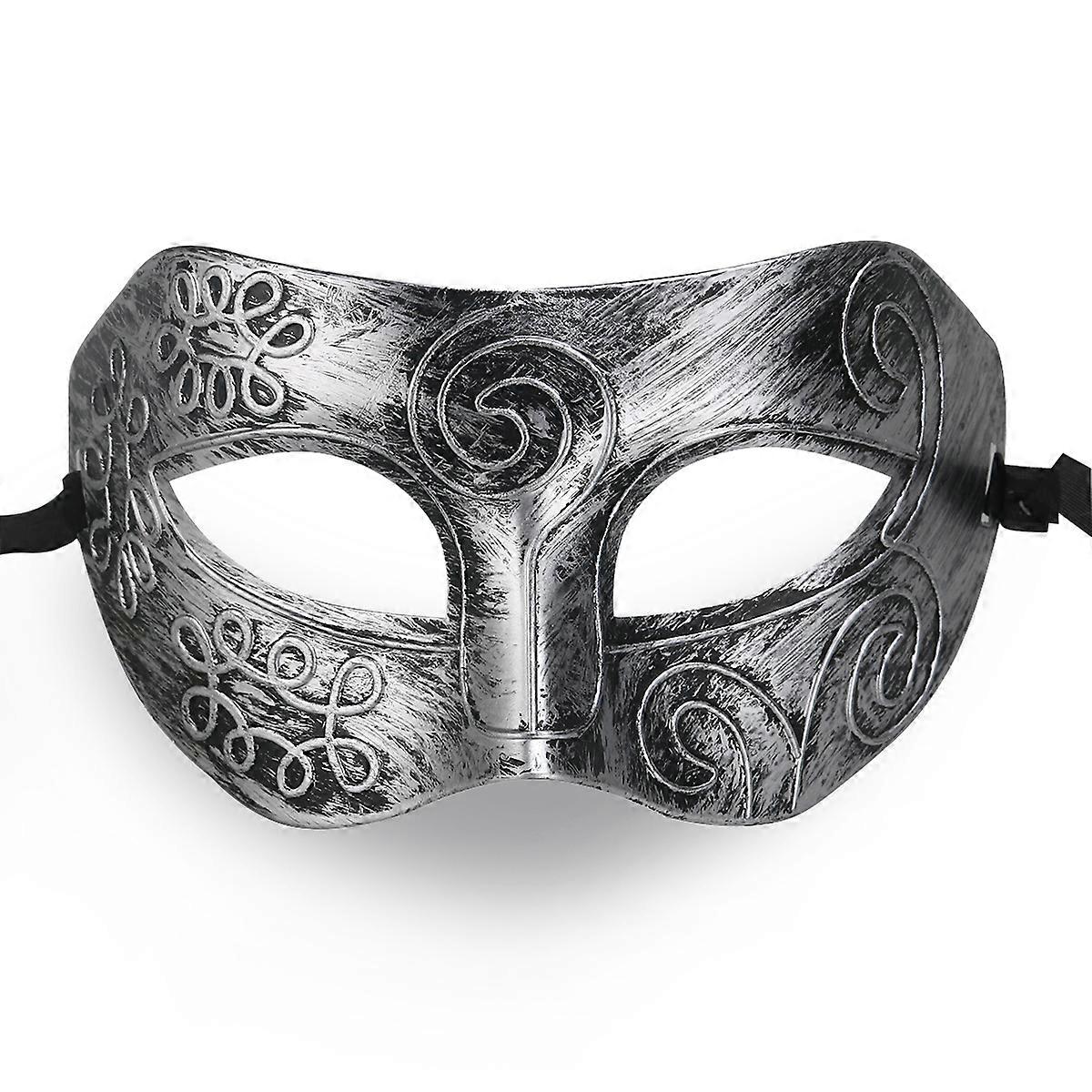 MUSEYA Cool Adult Men Greek Roman Fighter Masquerade Face Mask for Fancy Dress Ball / Masked Ball / Halloween (Silver)