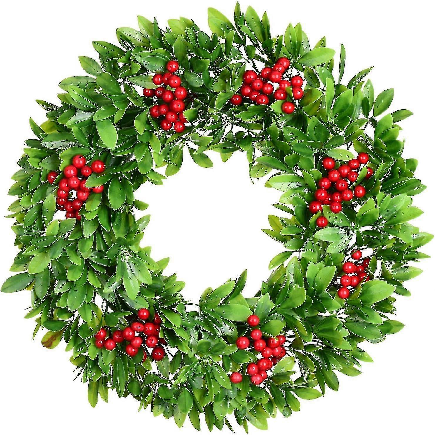 Mytjv-green Leaves Christmas Wreath With Red Berry - 15 Inch Artificial Schefflera Wreath With Red Berries For Christmas Front Door Window Fireplace D
