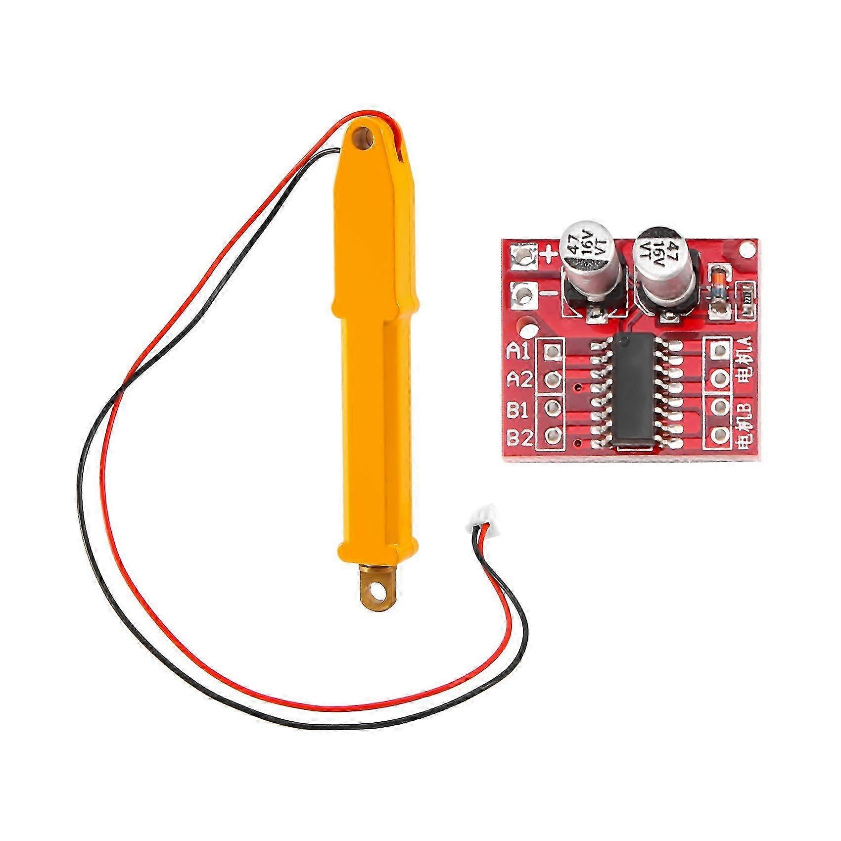 1 . Closed design , putter to the top will not out. 2 . Try to balance the top of the push rod , Can not withstand too much force. 3 . In order to prevent the motor from burning out when turing , external drive plate or motor current limit is recommended. Motor Driver Technical Datae Dual H-bridge motor driver , can drive two DC motors or a 4-wire two-phase stepper motore. The module supply voltage 2V-10V.Signal input voltage 1.8-7V. Single Operating urrent 1.5A current up to 2 5A , ow standby curent ( less than 0.1uA ) Built-in common conduction circuit, when the input pin is left floating,the motor does not malfunction Built-in thermal circuit with hysteresis effects (TSD ),without worring about motor stall Motor Driver: Power positive and negative reversed will cause damage to the circuit . Output is shorted to ground or output short circuit , and the motor stall , the chip will heat protection , in the nearor exceeding 10V voltage and current is 2.5A situation can also cause chip burned specification:12V colour:yellow Material:Metal + plastic size:11 x 2 x 2cm Package Contents: 1 * Model excavator arm 1 * Motor drive board