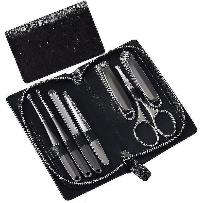 Nctz050 Champagne Color Nail Clippers 7-piece Set (black Leather Cover)