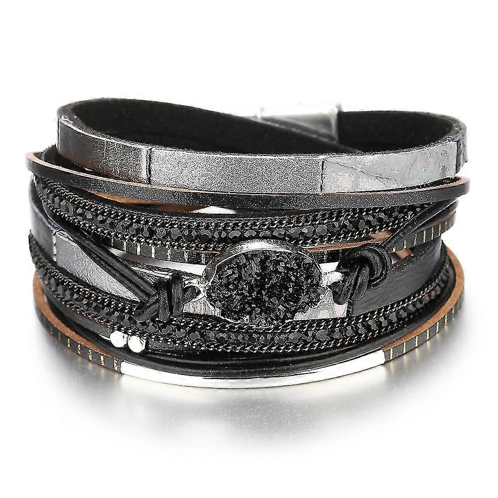 NEW Diamond-encrusted Leather Multi-layer Hand-woven Retro Gravel Bracelet Women's European And American Jewelry
