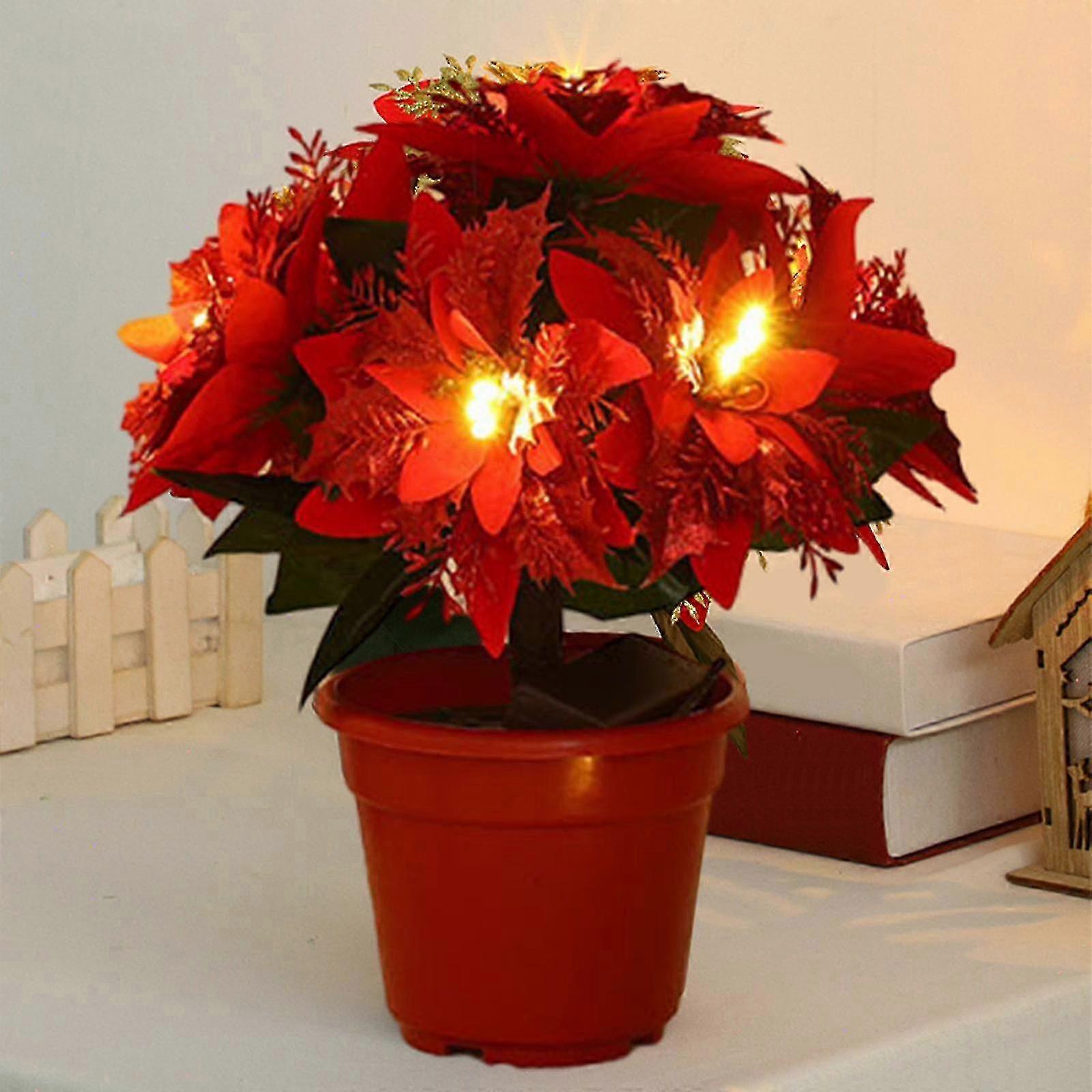 Newway Tabletop Poinsettia Tree Light Christmas Plant With Lights Poinsettia Flowers Artificial Lighted For Holiday Party Centerpiece Table Decor Chri