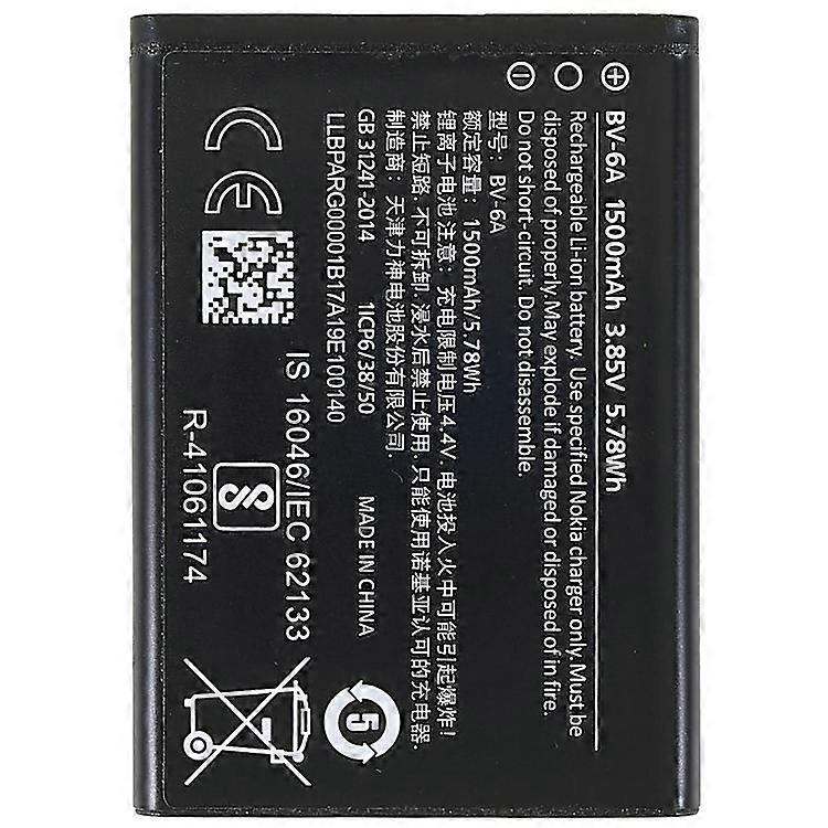 Compatible For Nokia 206 / 5250 / C5-03 / 8110 4G 3.85V 1500mAh Li-ion Battery Replacement Part (Encode: BV-6A) (without Logo)