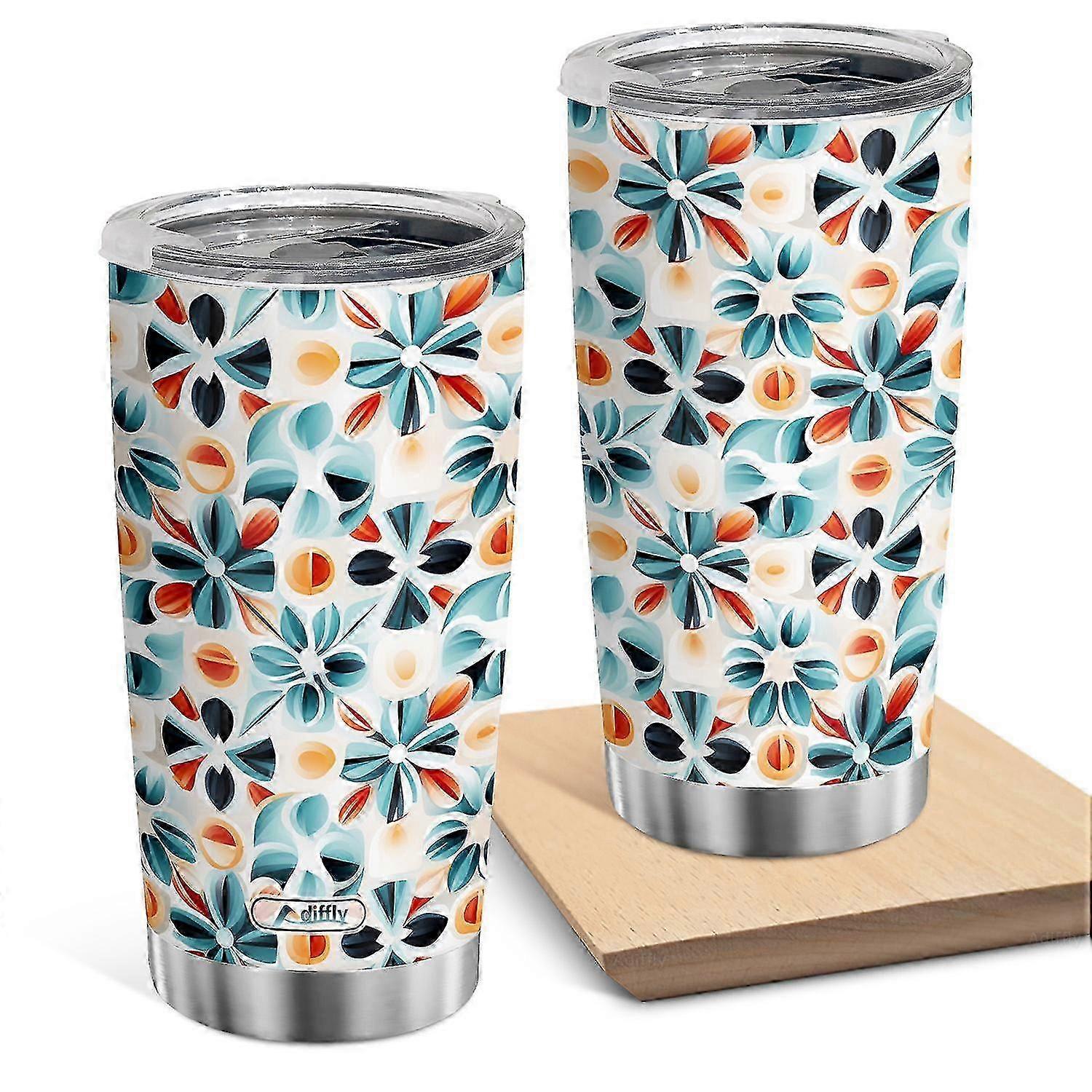 Oasisdream 20oz Colorful Flowers Print Tumbler Double Wall Vacuum Insulated Coffee Cup with Lid