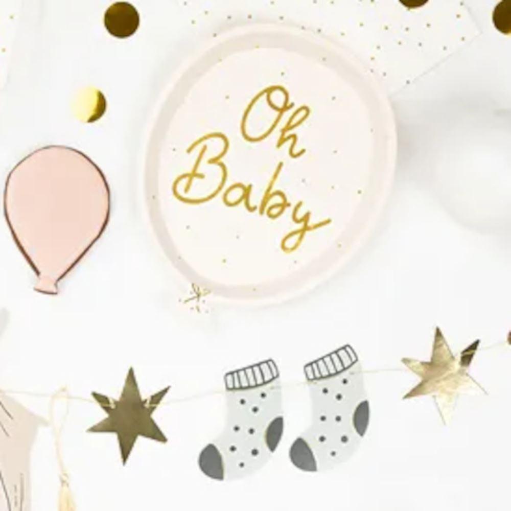 Oh Baby Balloon Shape Paper Plates | Baby Shower Tableware Neutral Gold x 6