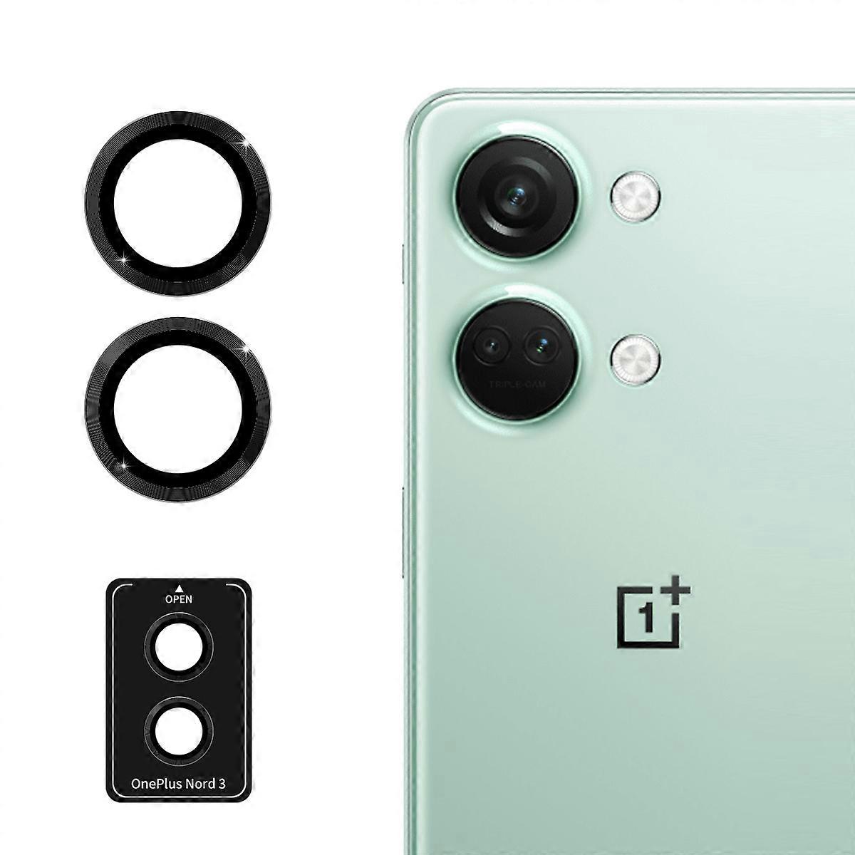 For OnePlus Nord 3 5G/Ace 2V 1 Set Camera Lens Protector Tempered Glass Film with Metal Ring-Black