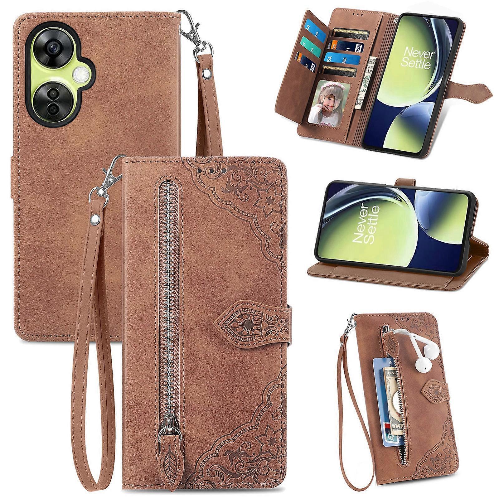 For OnePlus Nord CE 3 Lite Embossed Flower Zipper Leather Phone Case