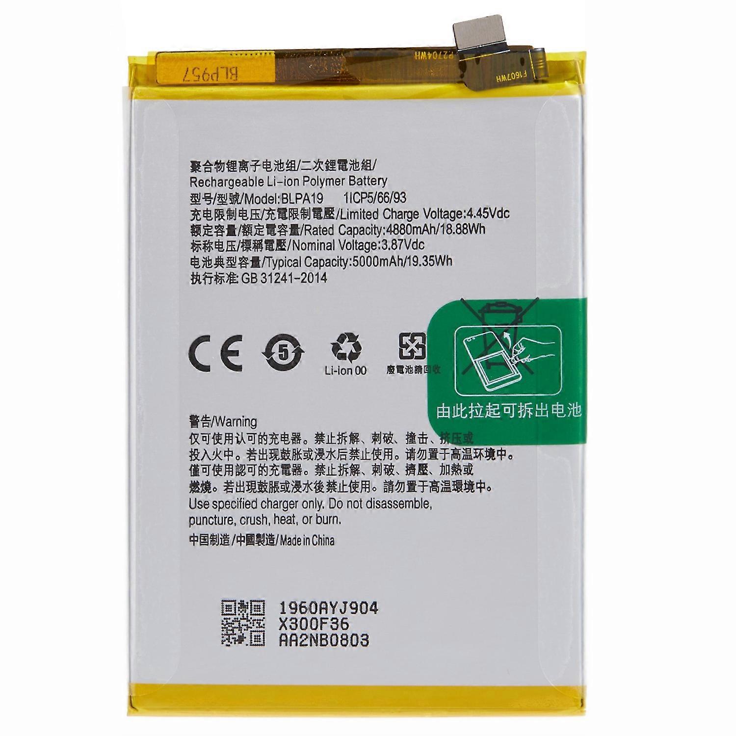 For Oppo A58 4G A38 4G 3.87V 4880mAh Li ion Polymer Battery Assembly Part (Encode: BLPA19) (without