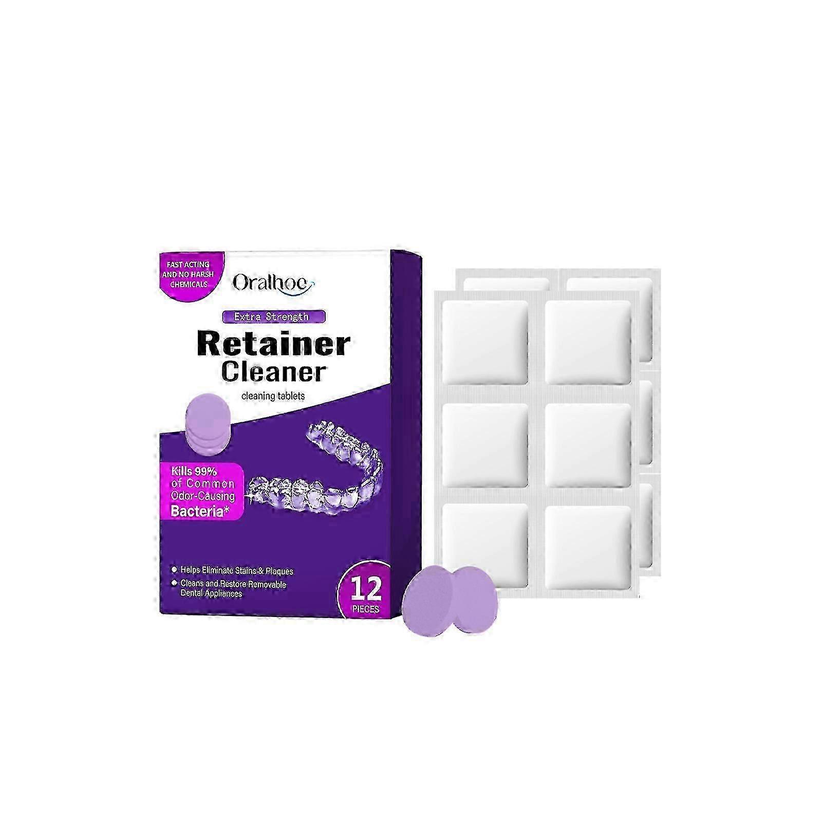 Oralhoe Purple denture retainer cleaning tablets for stains, tartar buildup, and braces odor removal.