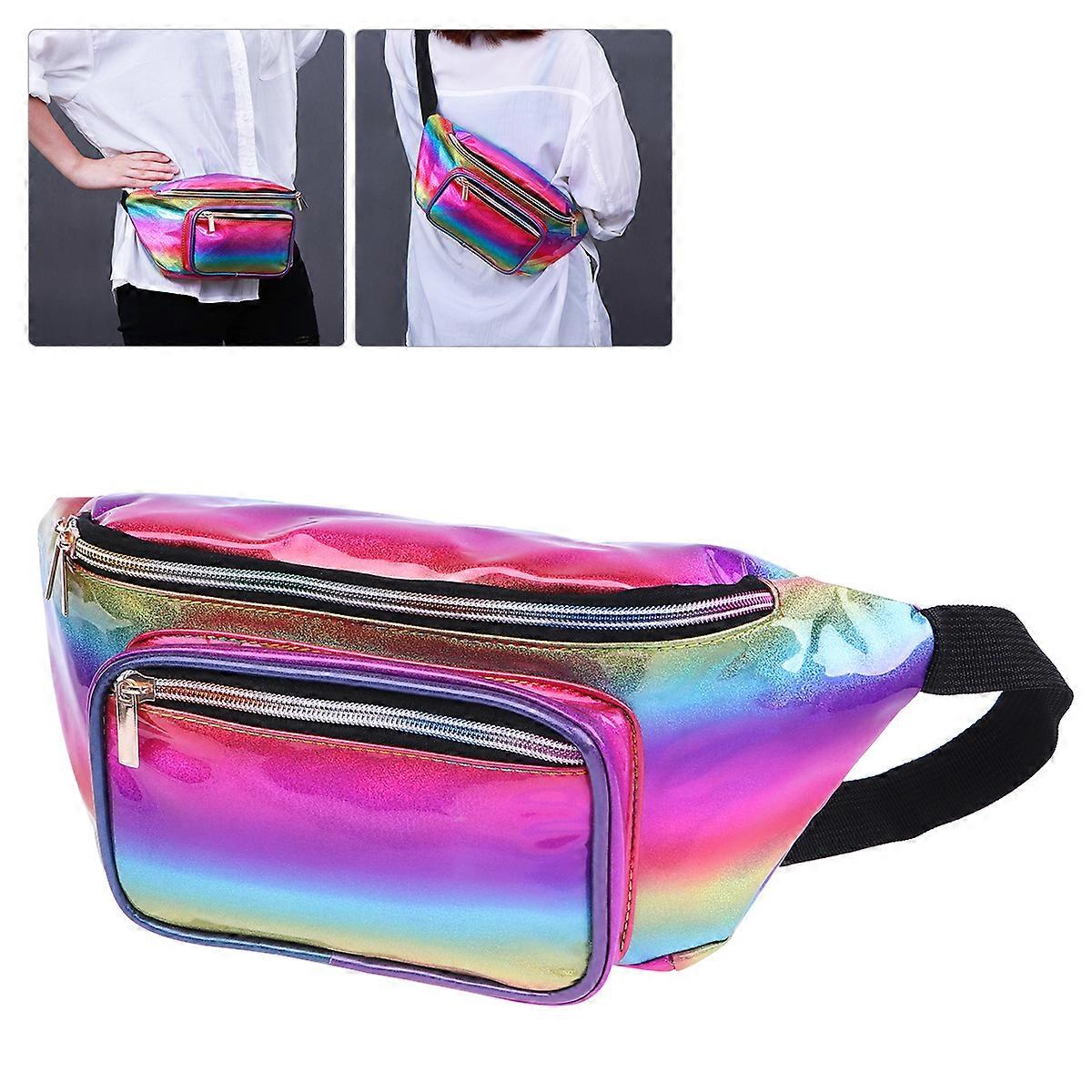 OULII Unisex Fashion PU Leather Waist Bag Shiny Belt Bag Pack All-match Waist Pouch Travel Bag