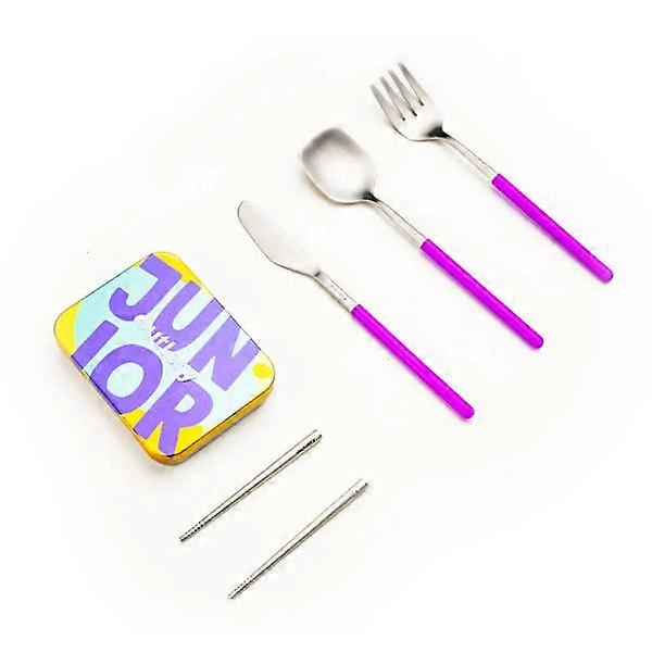 Outlery Nan Junior Set Portable and Reusable Stainless Steel Set for Children, Purple Stainless Steel