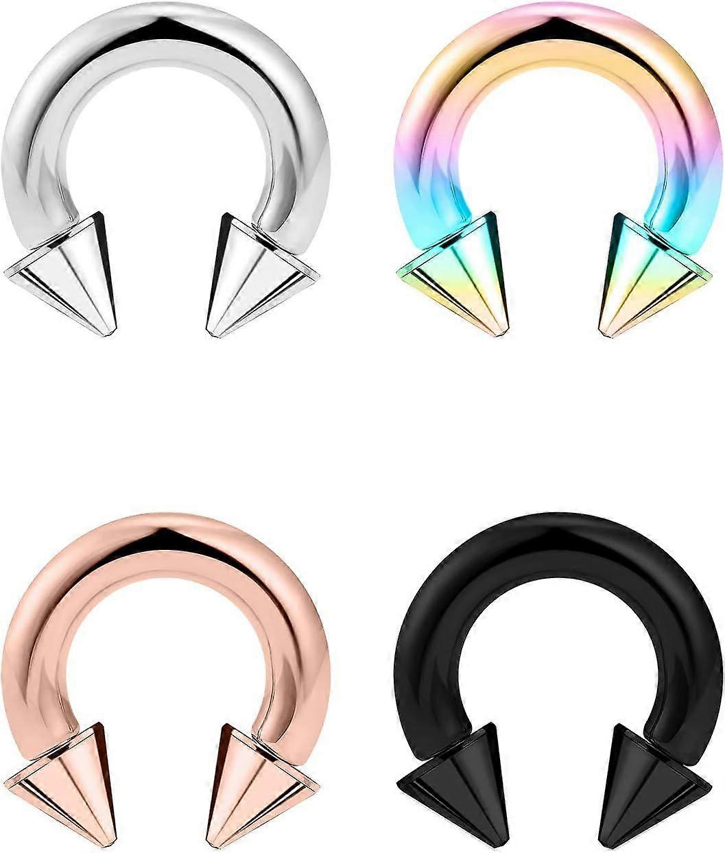 Thickness: 8G (3mm); Spike Diameter: 6mm; Inner Diameter: 12mm (1/2inch); Color: Silvertone, Black, Rainbow, Rose Gold. One Order Including 4 Pcs Internally Threaded Horseshoe Barbell PA Ring, Come With a Velvet Gift Bag, Also Can Serve As Gift For Birthday, Christmas Day, Anniversary Day, Valentine's Day And More. SATISFACTION GUARANTEE: Please contact Us if You Have Any Problem, We Will Solve for You Within 24 Hours. Excellent Presale Consulting and Aftersale Customer Service. Material: These Circular Horseshoe Barbells Are Made of 316L Stainless Surgical Steel, Solid and Durable, hypoallergenic; High Polished Surface, Very Smooth to Wear, Extremely Easy to Clean. Feature: High Polished Smooth Surface Metal is Very Comfortable and Prevents Damage and Irritation to Your Piercings, Perfect for Daily Using. Perfect for Ear Gauges, Nipple Rings, Lip Ring, Large Septum Rings, Genital Prince Albert Piercing.