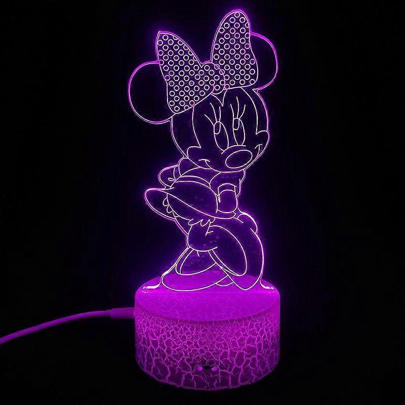 Enhance your bedroom or desk decor with this beautiful 3D visual LED night light featuring Mickey and Minnie Mouse. With 16 different colors to choose from, you can create the perfect ambiance for any occasion. Simply use the included remote control to select your preferred color or mode.