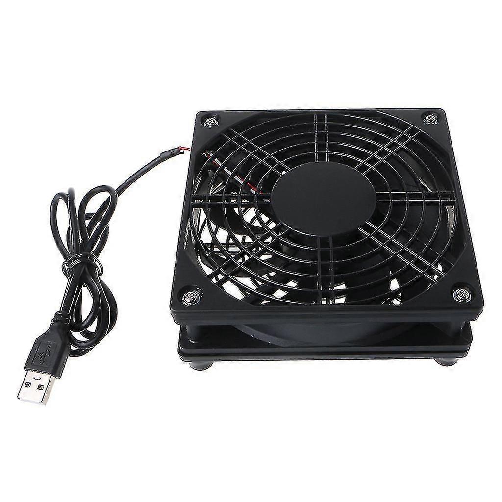 Features: brand new and high quality router cooling fan Cooling your TV BOX/Router or any electronic products. Make sure reduce your products temperature and increase work efficiency Specification: Size:120x120x35mm Connector:USB Rated current: 0.35a10% Amp Rated voltage:DC 5V Bearing Type: Hydraulic Bearing Noise:26.210%dBA Fan speed: 250010%rpm Airflow:92.6CFM Weight:176g/pcs Cable Lenght: 50cm Life: 40000 hours Package including: 1 set 14035 Router Fan