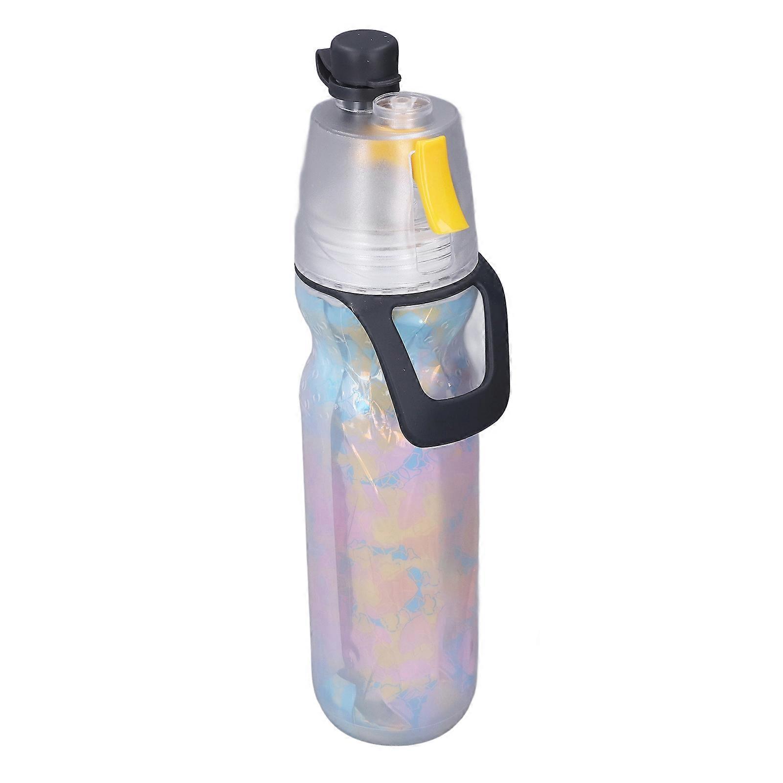 PE Misting Water Bottle Spray Mist Sports Water Bottle Reusable Cooling Drinking Bottle with Double Wall Insulation Carry Loop Yellow