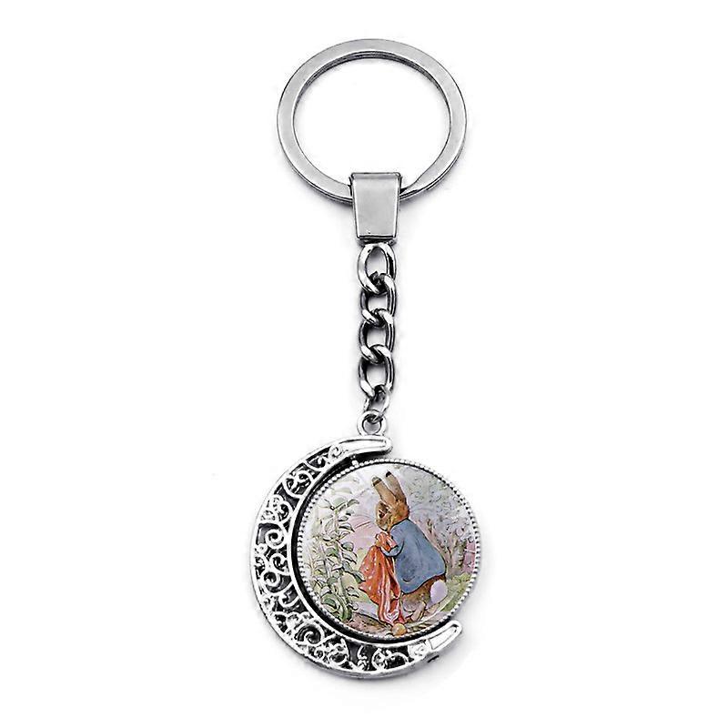 Peter Rabbit keychain pendant, Easter bunny double-sided rotating key ring ornament