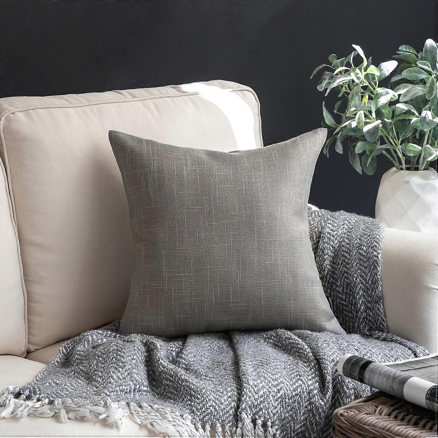 Phantoscope Soft Textured Linen Burlap Series Decorative Throw Pillow, 18" x 18", Grey, 1 Pack