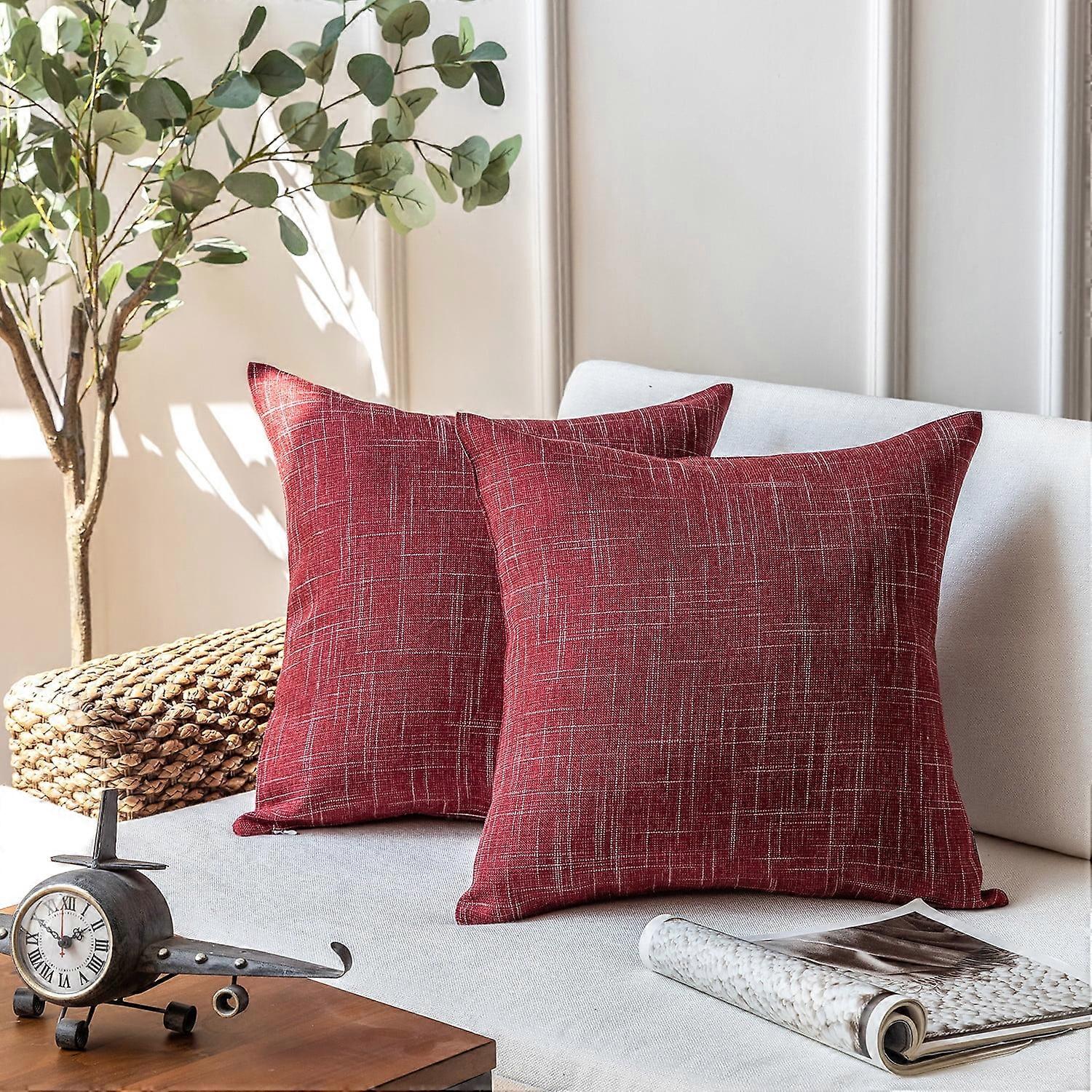 Phantoscope Soft Textured Linen Burlap Series Decorative Throw Pillow, 22" x 22", Red, 2 Pack