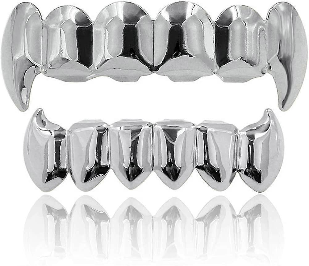 PIAO 18K Gold Silver Plated Hip Hop Vampire Fangs Top Bottom Teeth Grillz Set for Men and Women