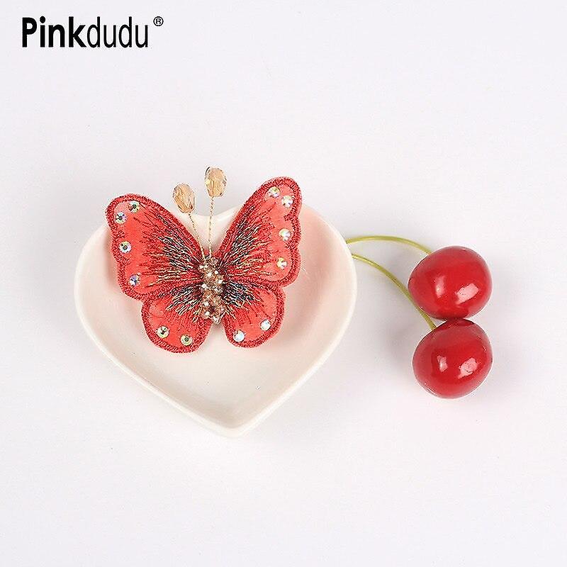 Pinkdudu Elegant Lace Embroidered Butterfly Fabric Brooch Fashion Silk Silk Pin For Women Jewelry Accessories Gifts Pd794