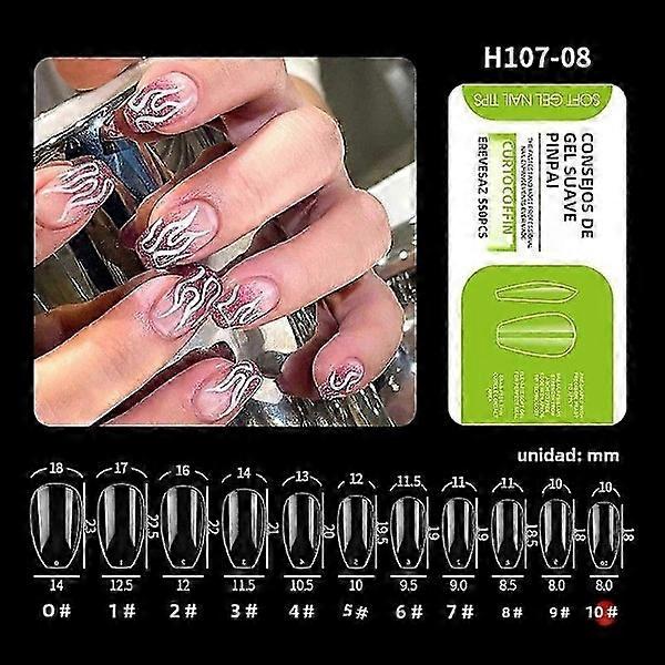 PINPAI 550 pcs Long Round Acrylic False Nails Ballerina Clear Almond and Chestnut Medium and Full Coverage Artificial Gel Fake Nails No.8
