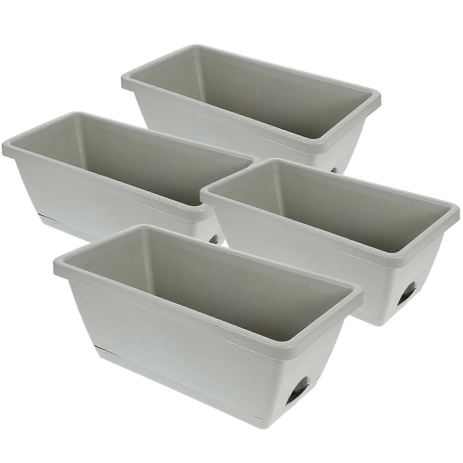 This flowerpot is made of plastic material, which is sturdy and durable. The perfectly designed to hold flowers and vegetables, but also can be placed at home or office as decorations. In addition, a good family, friends and lovers. These plastic large planters will retain color through rain, snow, and sun. Features - Color: Light Grey -Material:Plastic - Size: 35.50X17.00X14.00cm/13.95X6.68X5.50in -The simple but practical flowerpot can create a , and romantic atmosphere for you. - The Rectangular Bonsai Flower Pot is easy to and display, space-saving and practical indoor or outdoor. - The Flowerpot can be used as home furnishings, gardening, home gardening, balcony, etc. - Placed firmly, the bottom is nonslip and wear-resistant, and has a large capacity space. - The simple but practical Rectangular Flowerpot can create a romantic atmosphere for you. Package list: 4 x window flower box with tray