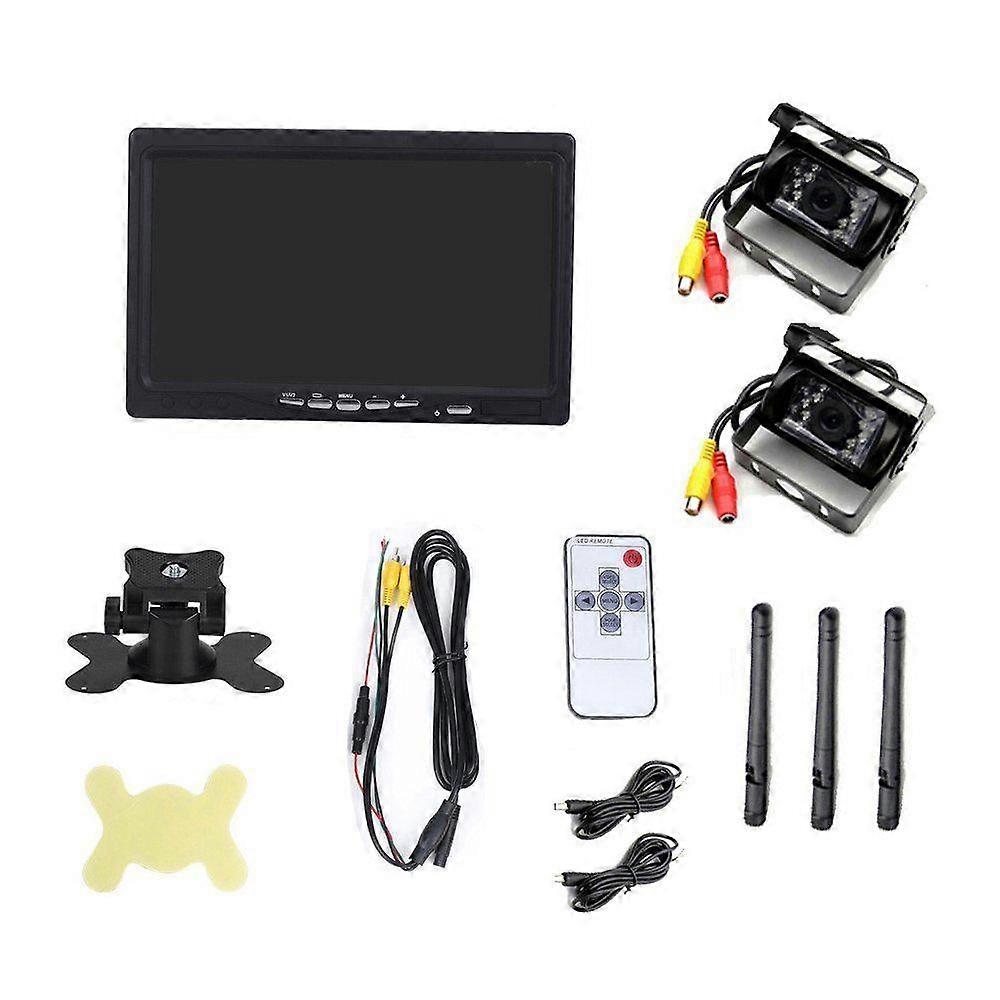 Podofo 7 Inch Wireless Truck Monitor System 2 IR Night Vision Waterproof Rear View Cameras Parking Assistant for RV Truck Trailer Bus