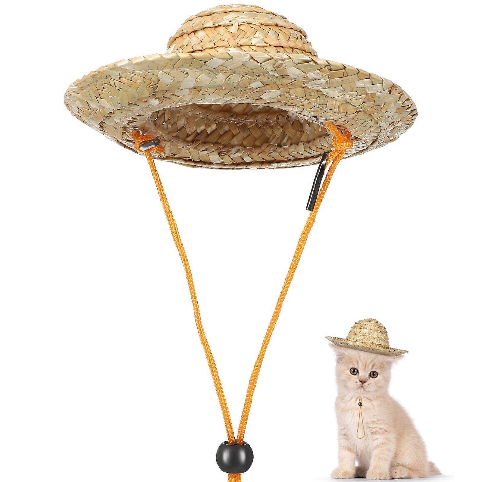 POPETPOP Pet Sombrero Straw Hat Adjustable Hawaii Garden Sun Bucket for Small Dogs Puppy Cats Size S