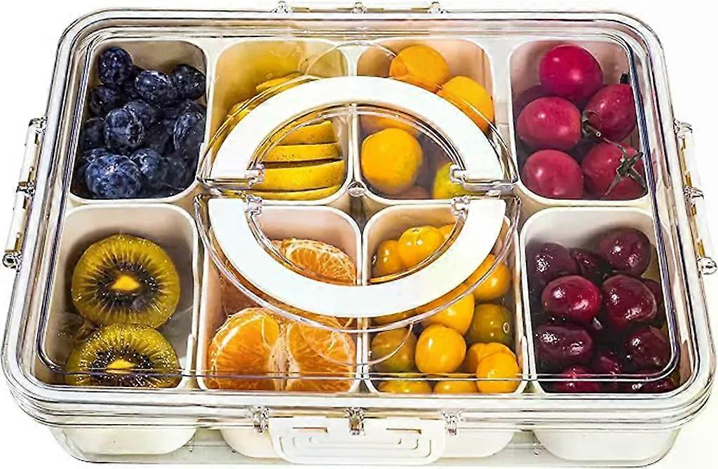 Portable snack box with 8 compartments and handle, divided, made of plastic, easy to clean