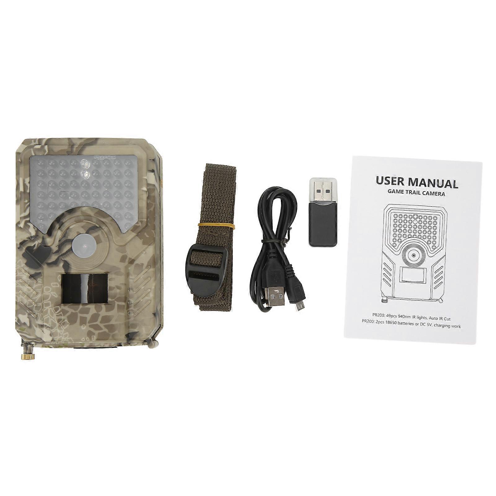 PR200 Trail Camera IP56 Waterproof HD Infrared Night Vision Motion Activated Wildlife Surveillance Camera for Outdoor