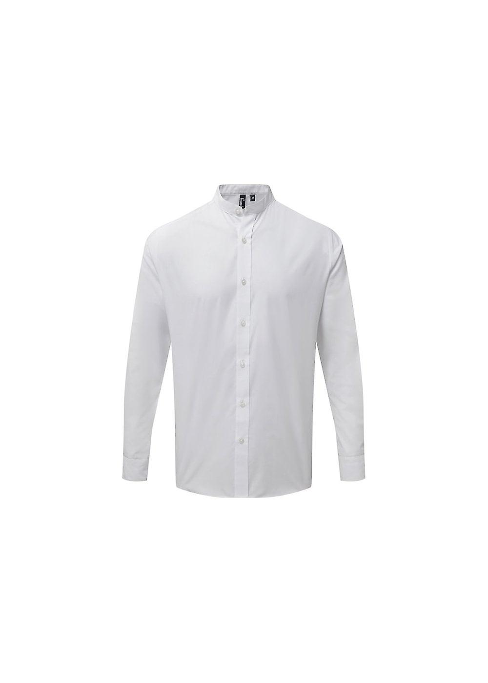 Premier Banded Collar Grandad Long Sleeve Shirt PR258 This iconic shirt is a welcome addition to the Hospitalitywear collection and is a popular style worn at the front-of-house. The distinctive collar features a narrow banded fabric strip that runs around the neck and fastens at the front with a top button. Double buttons to the cuff and a sleeve guard allows for a more casual roll-back option on the arm. Styled to be unisex so everyone can introduce this trendy yet timeless piece into their teamwear. Product Features Long sleeve unisex shirt Double button cuff and sleeve guard Typical banded grandad collar with top button fastening Easycare fabric Washing Instructions 40C domestic wash Fabric: 65% Polyester, 35% Cotton Weight: 115gsm Size: XS 30" S 34" M 38" L 42" XL 46" 2XL 50" 3XL 54" Please click on the size guide to check the Premier clothing sizes.