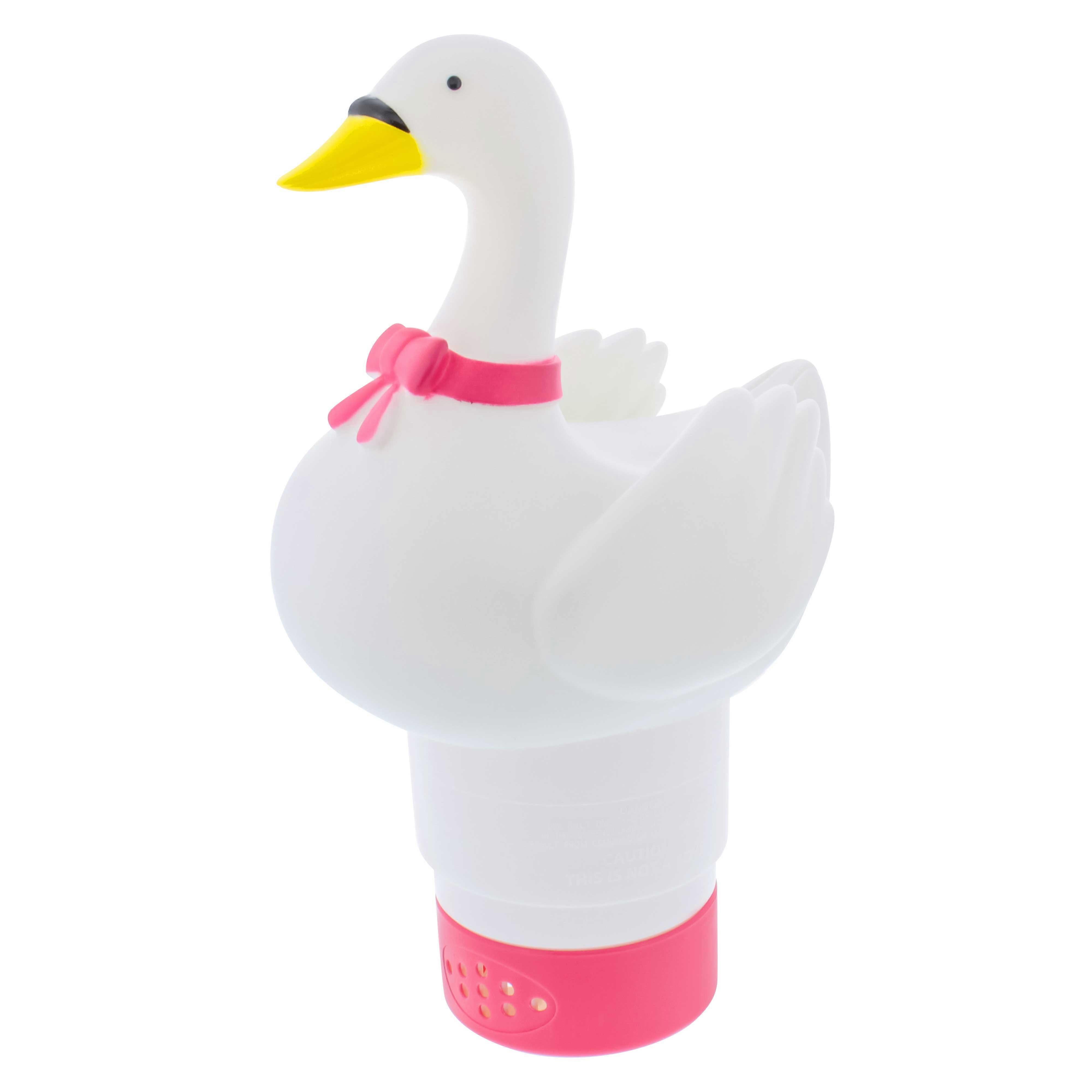 Princess Swan Floating Pool Chlorine Dispenser, Collapsible Base, Holds 3" Tablets - Cute 8" Pink & White Duck Float, Adjustable Flow, Compatible