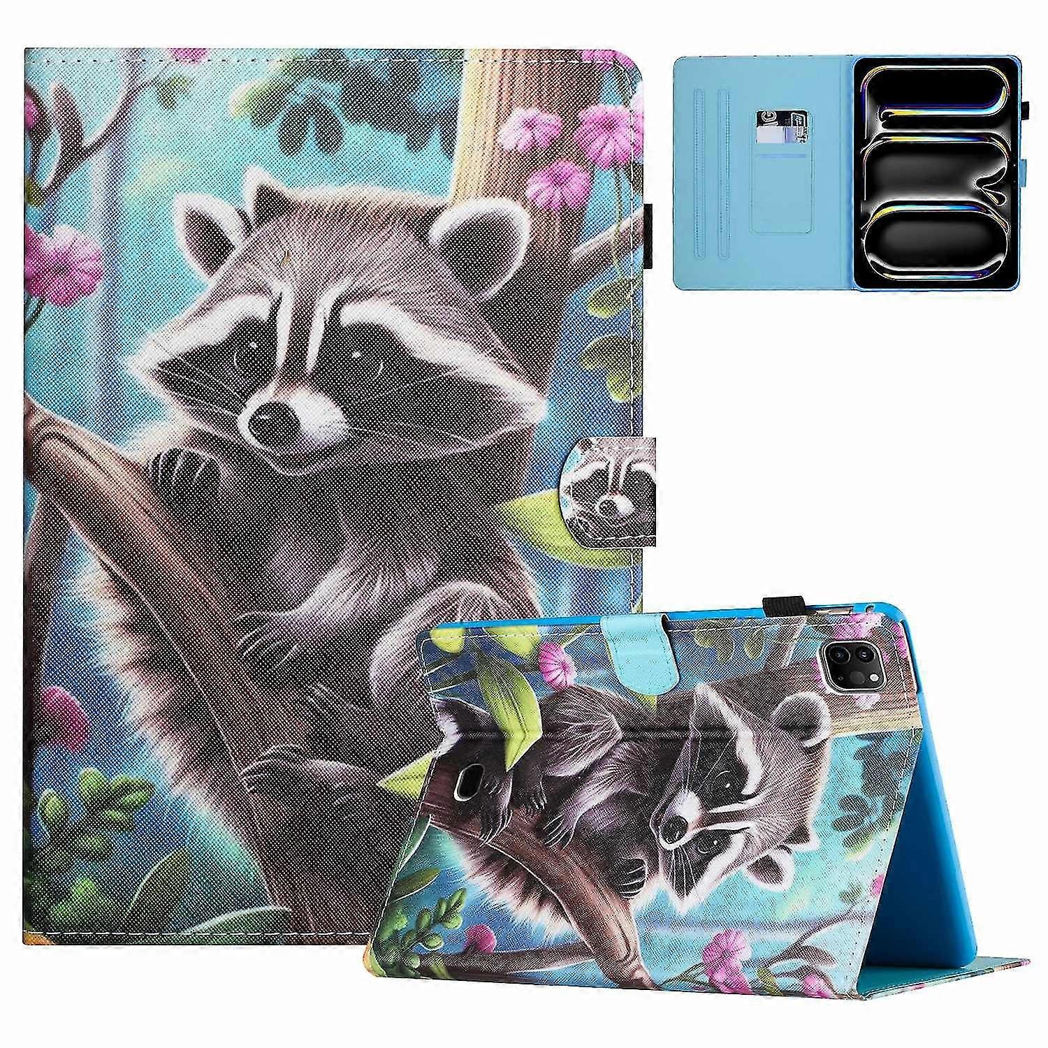 For Pro 11 (2024) Tablet Cover Shockproof Holder Stand Case - Fox Raccoon Multicolor