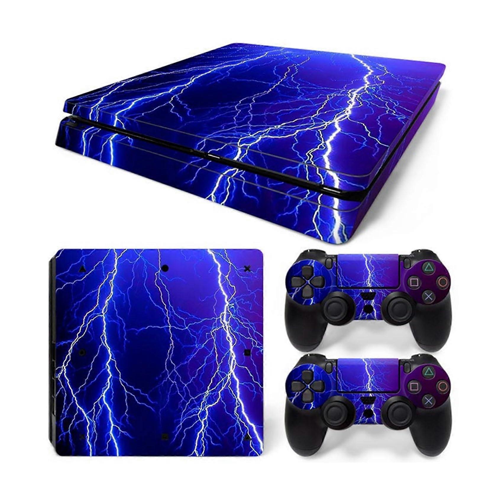 for PS4 Slim Skin Console and Controller, Stickers Vinyl Decals for Playstation 4 Slim(Blue Lightning)
