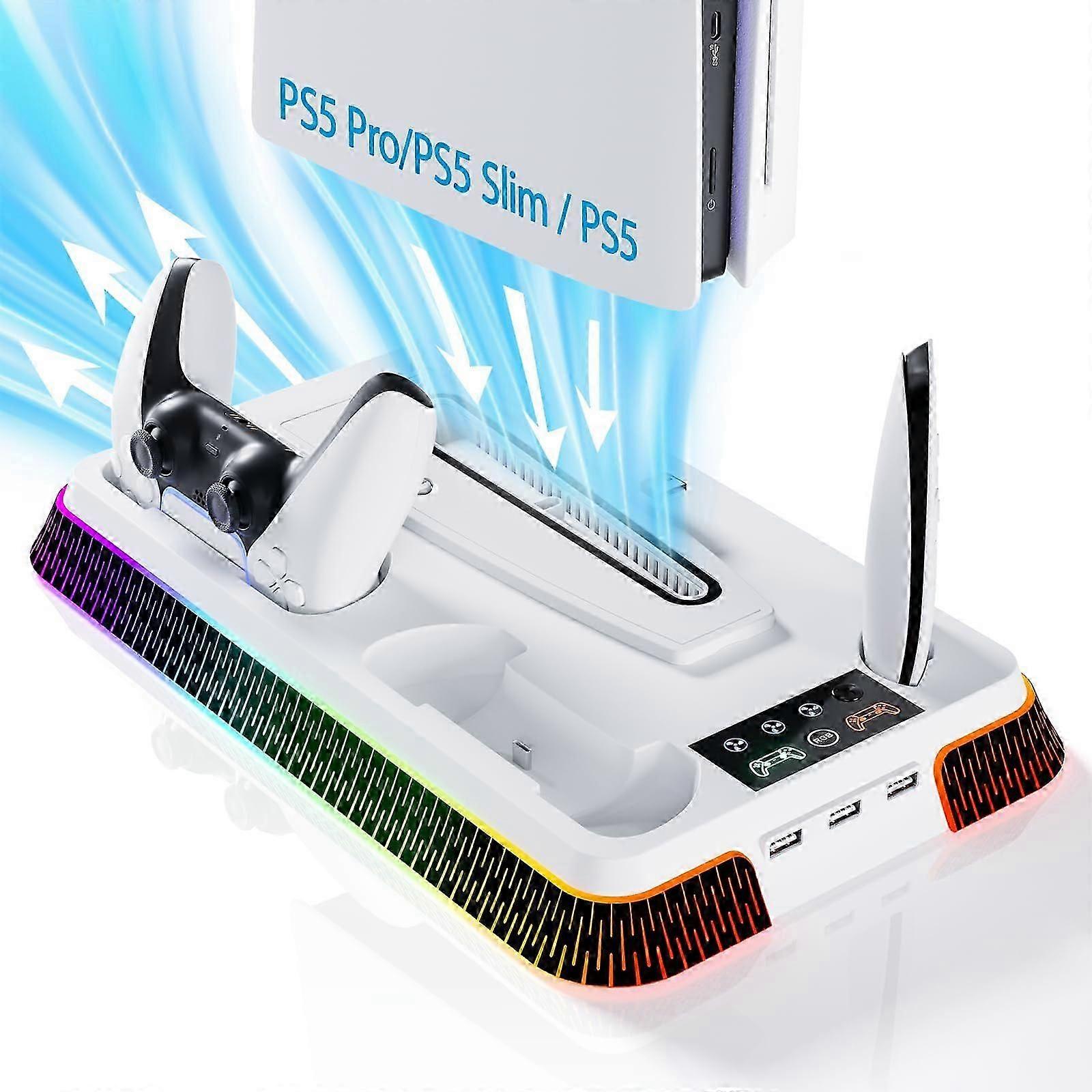 Ps5 Cooling Station, Ps5 Pro Stand Rgb And Playstation 5 With Dual Charging Station