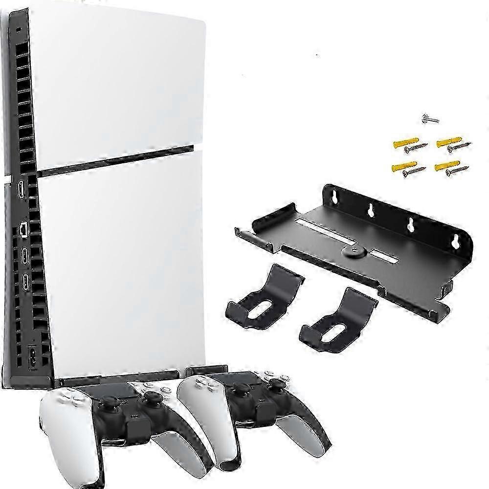 Wall Mount Stand for PS5 Slim Disc & Digital Edition,with 2 Removable Controller Holder, Screw Fixing