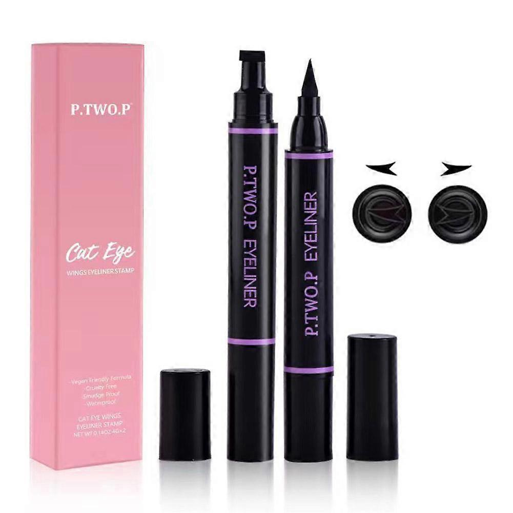 P.Two.P 2Pcs/Set Double Head Waterproof Eyeliner Pen Cat Eye Winged Eye Eyeliner Cosmetic Seal Stamp Wings Eye Beauty Ki