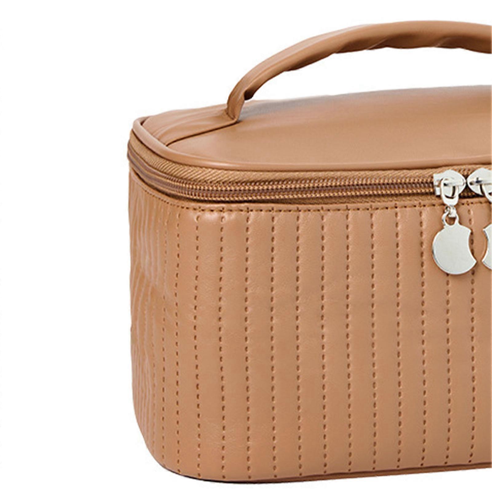 PU Open Lid Cake Shape Make Up Bag Cosmetic Storage Bag Soft Color Portable Makeup Bag Coffe