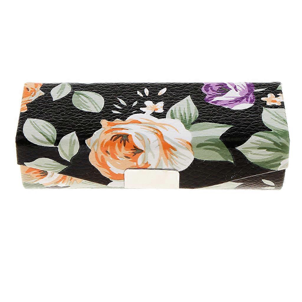 PU Double Lipstick Case Holder Box w/Mirror Retro Black Fower Pattern Case