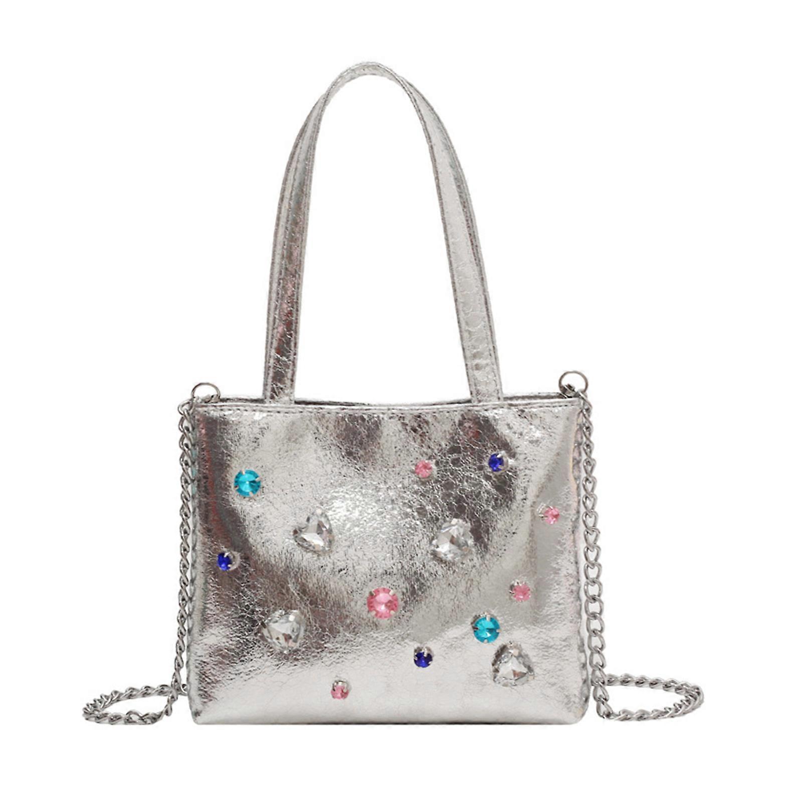 PU Bag Women Girl Shoulder Bag Versatile Crossbody Bags Shoulder Bag Diamond Design Bag Handbag Chain Bag Silver/Black Silver