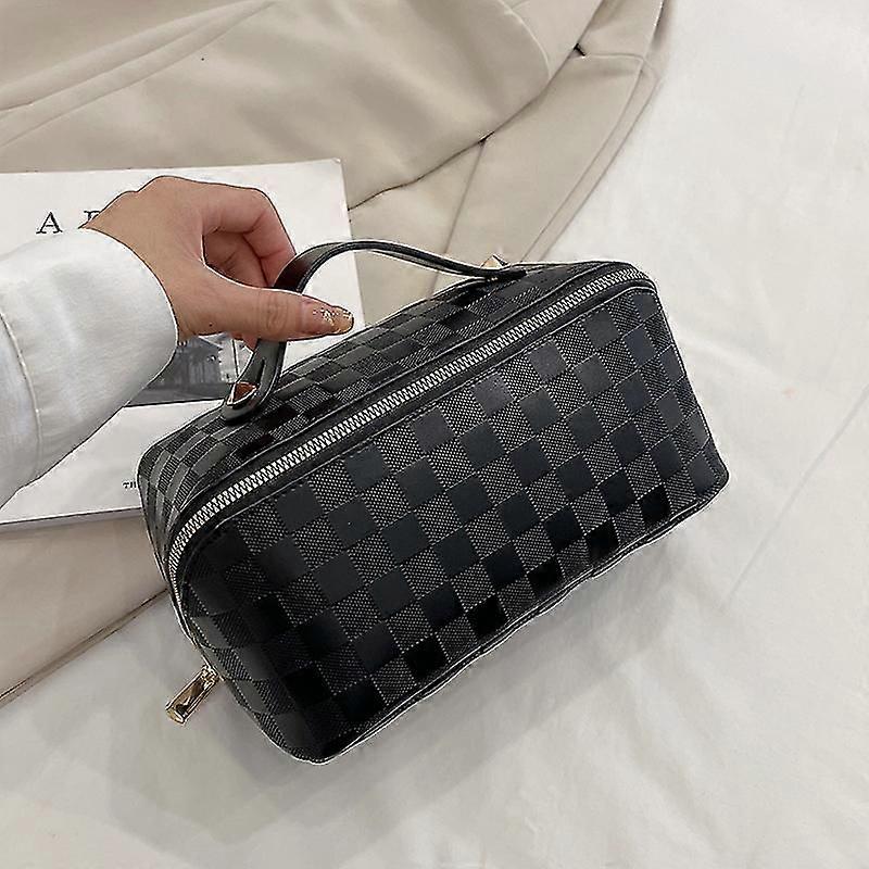 Pu Leather Plaid Weave Pattern Storage Large-capacity Multifunctional Cosmetic Bag